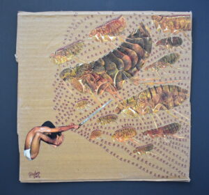 Title: Bug Free Please Medium: Magazine, ink pen on cardboard Dimension: 9″x 9″