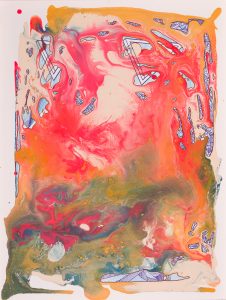 Title: Pink Storm Medium: Tempera with sharpie Dimension: 18” x 20”