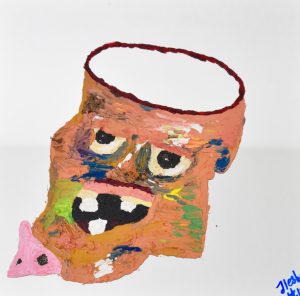 Title: What Am I Thinking? Medium: Oil Paint and Tape on Mirror Dimension: 25″ x 25″